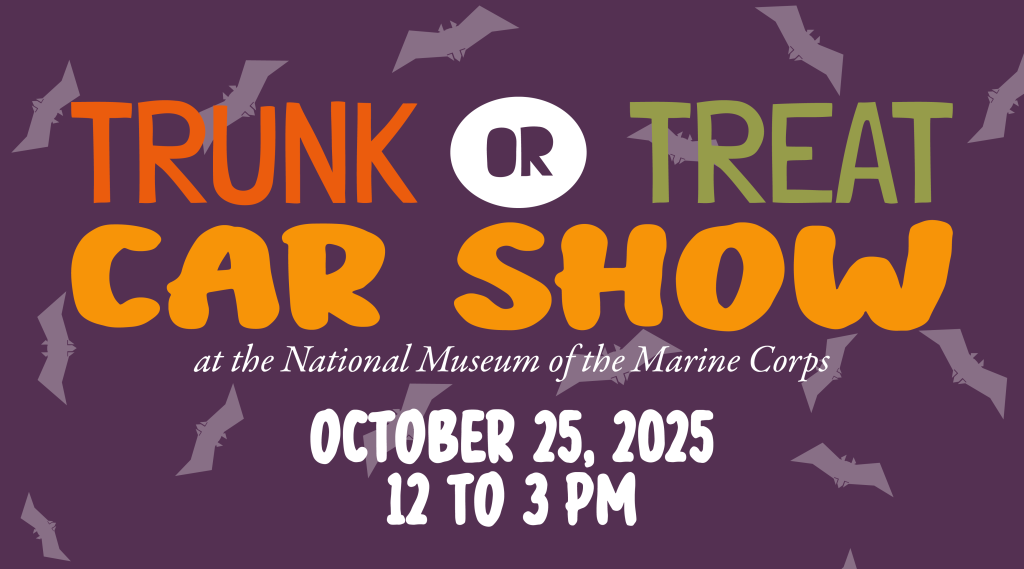 The 2025 Fall Trunk-or-Treat Car Show will take place on Saturday, October 25, 2025, from 12:00 PM to 3:00 PM ET at the National Museum of the Marine Corps. Admission is free, with museum hours from 9 a.m. to 5 p.m.