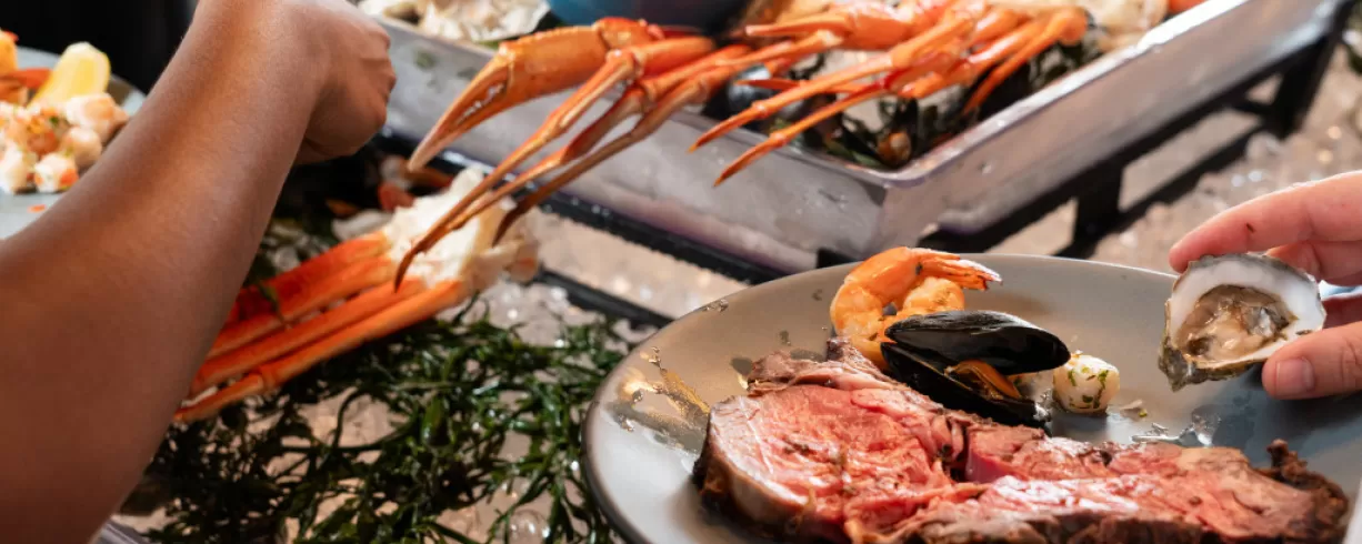 Join us at the Hen Quarter Prime for our endless Grande Buffet where indulgent southern fare and picturesque waterfront views await. Our chilled seafood bar featuring snow crab, raw oysters, ceviche and more is a true standout, alongside our carving station and Southern specialties. Pair the Grande buffet with endless mimosas. It’s an experience dripping with southern charm in the heart of DC’s Wharf District. Make a reservation today.