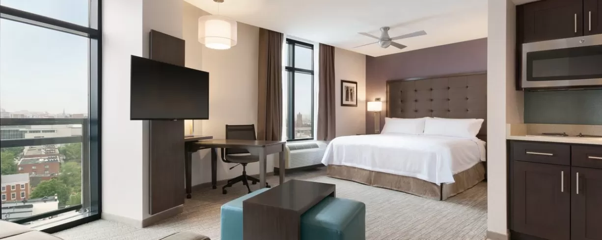 Located in the center of downtown Washington DC, a few blocks from the Convention Center, Metro, and entertainment, the Homewood Suites by Hilton Washington DC Convention Center hotel is perfect for all extended stay, business, convention and leisure visits. Across the street is a 24 hour Safeway grocery store, a number of restaurants from inexpensive fast food to gourmet restaurants. Chinatown is only 5 blocks away and has a number of restaurants to offer as well as the Verizon Center where both the NBA and NHL games are played. Walk three blocks and catch the DC Circulator bus and be in Georgetown in minutes! Take the Metro straight to L’Enfant and be a block away from the National Mall including the Air and Space Museum.