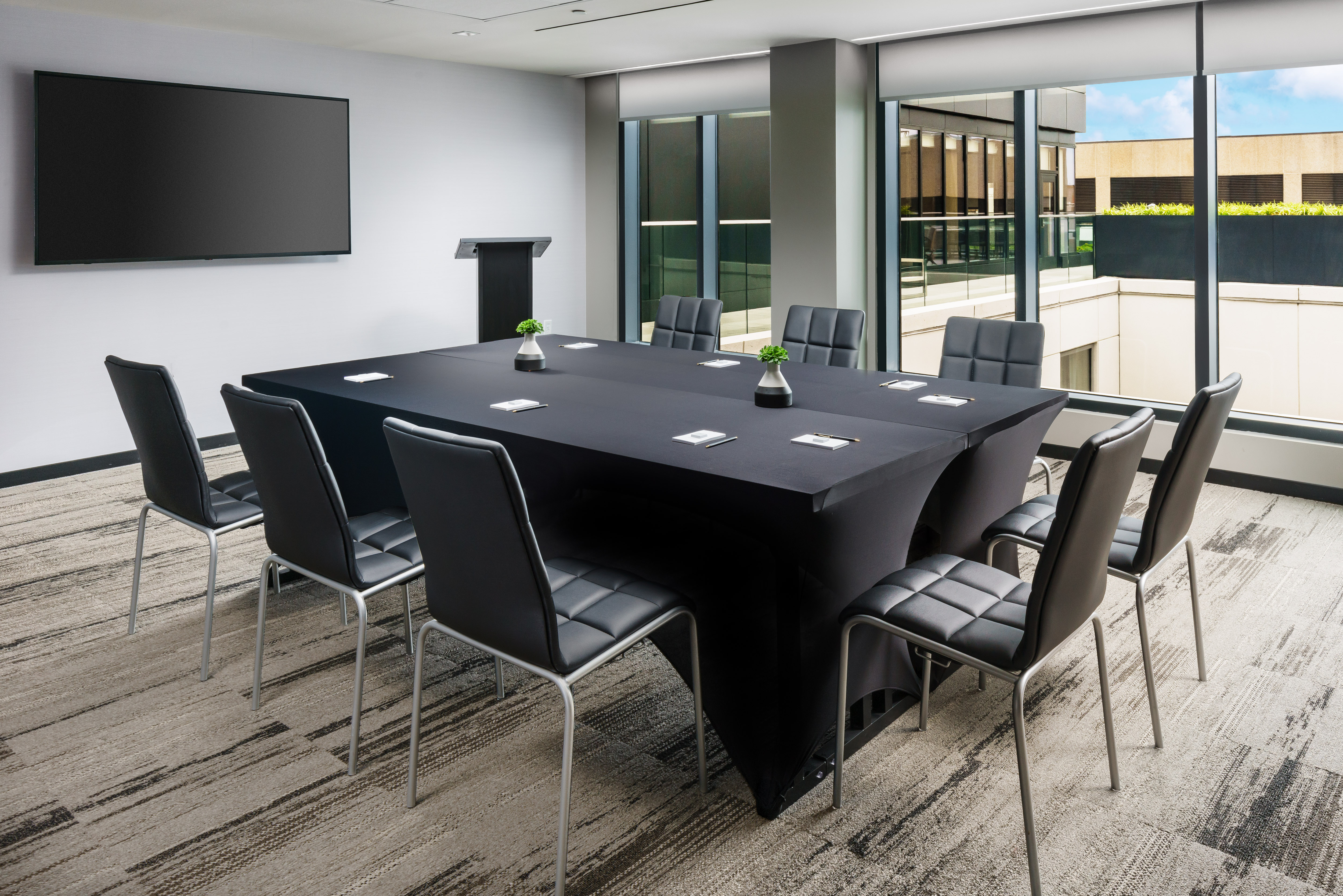 NEW building with 219 rooms located in Downtown DC. Our meeting rooms are located on the 14th floor (rooftop) with plenty of natural light and scenic views, floor to ceiling windows, no pillars, built-in audio-visual and a terrace for an outdoor event experience.