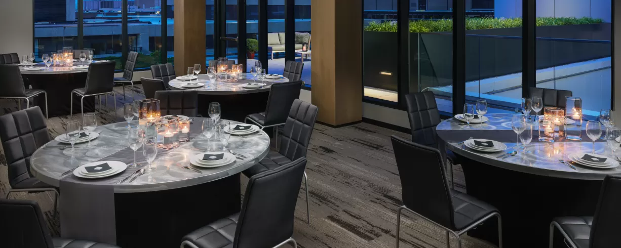 Plan a private reception on the rooftop hosted by the AC Lounge or host a catered event with AC Kitchen on our first floor. The closest metros are Farragut North and Farragut West. Complimentary services/amenities include Wi-Fi, access to onsite fitness center w/Peloton equipment, business center and 24-hour concierge service. On-site valet parking is also available.