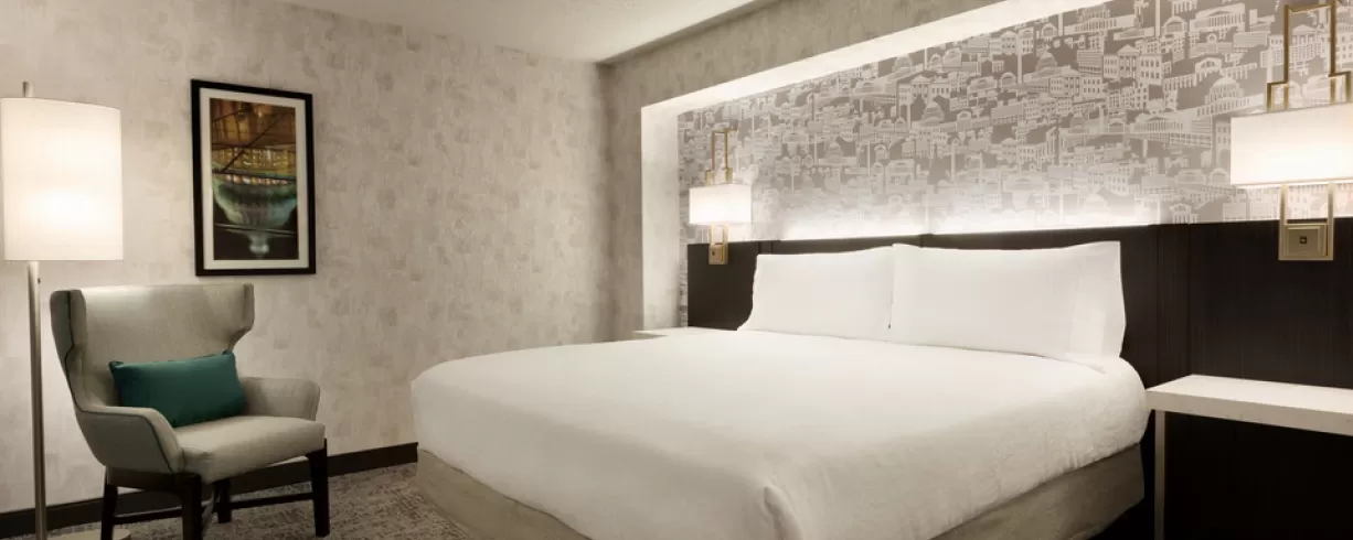 All newly renovated modern and sleek guest rooms. Directly across the street from the McPherson Square Metro Station (Blue and Orange Line). Centrally located in downtown Washington, DC - three blocks to White House, five blocks to the National Mall, Capital One Arena and the Walter E. Washington Convention Center. Complimentary Wi-Fi in all 300 guest rooms, public areas, and meeting space, complimentary use of the 24-hour Executive Business Center, Fitness Center and Indoor Pool. 24-Hour Food Pantry, ATM on property, full-service restaurant and lounge on premises, 2,000 square feet of meeting space, valet parking (only), handicapped accessible guest rooms, 20 junior suites and 100% non-smoking.